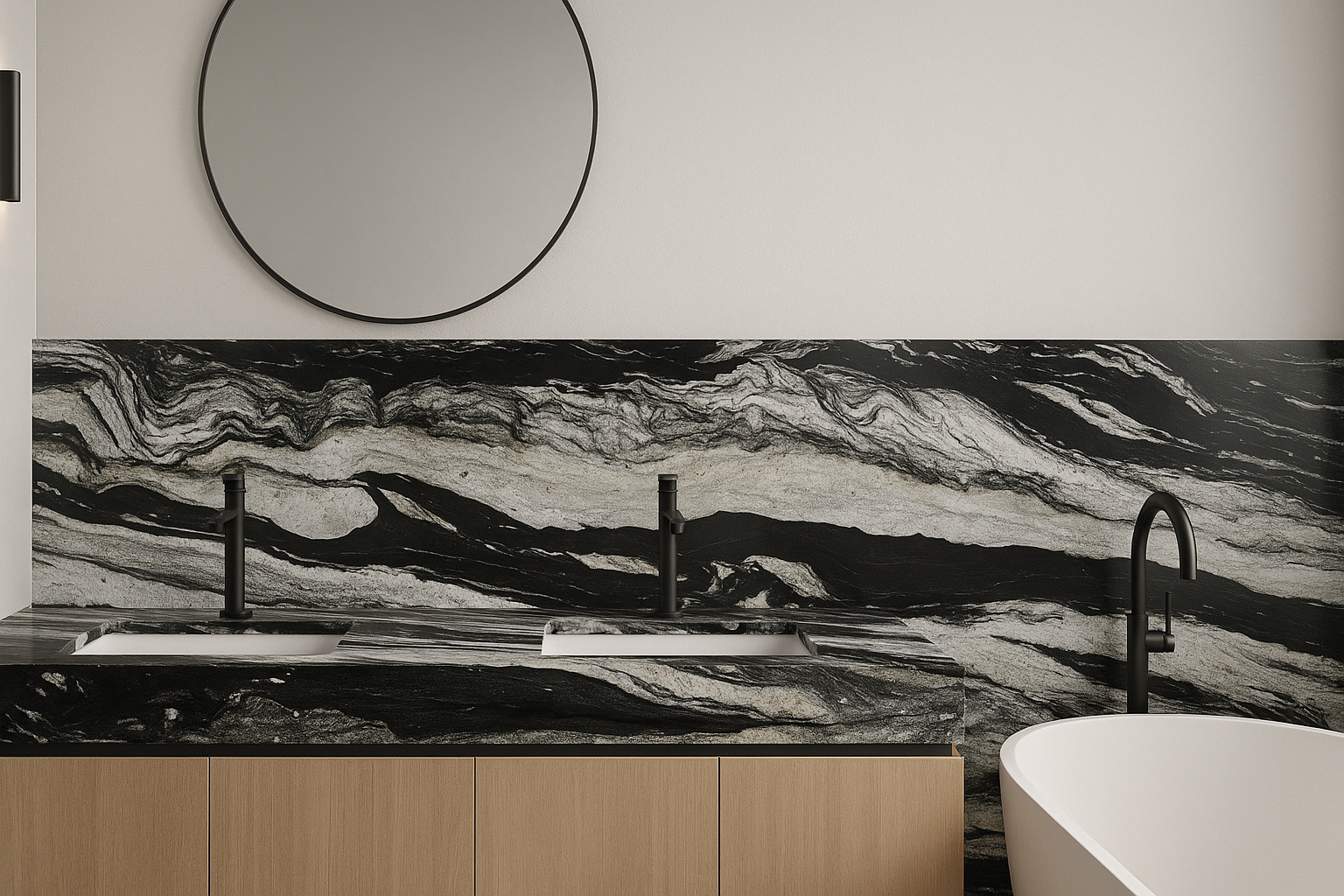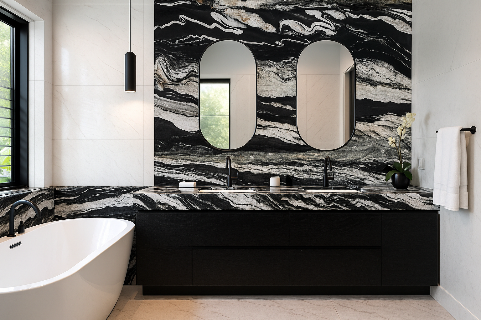 Copacabana Granite is an unforgettable Brazilian stone defined by its bold black and white striations that flow in dramatic, wave-like patterns. Each slab captures a stunning sense of motion and contrast, resembling the natural rhythm of ocean tides. Exceptionally durable and polished to perfection, Copacabana Granite is ideal for luxury kitchens, statement walls, and bold countertops that command attention and elevate modern design spaces.