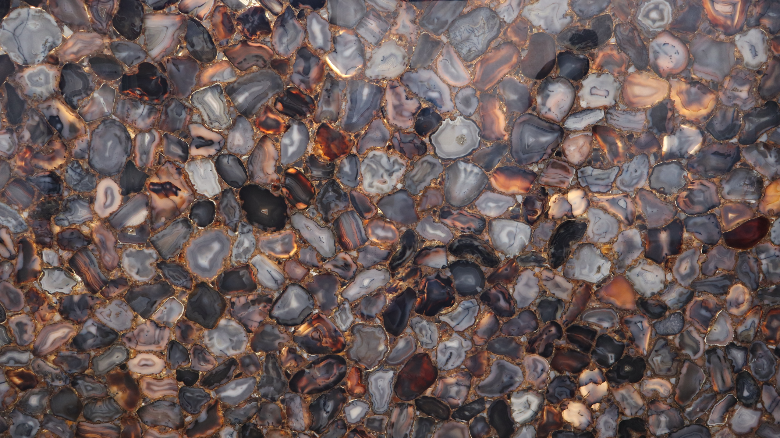 Black Chameleon Agate is a mesmerizing semi-precious stone that radiates depth and sophistication. Its polished surface reveals a captivating mix of smoky grays, jet blacks, and warm amber hues. Each agate slice forms a natural mosaic of light and contrast. When backlit, Black Chameleon Agate transforms into a glowing masterpiece, perfect for illuminated walls, luxury countertops, and high-end bar designs.